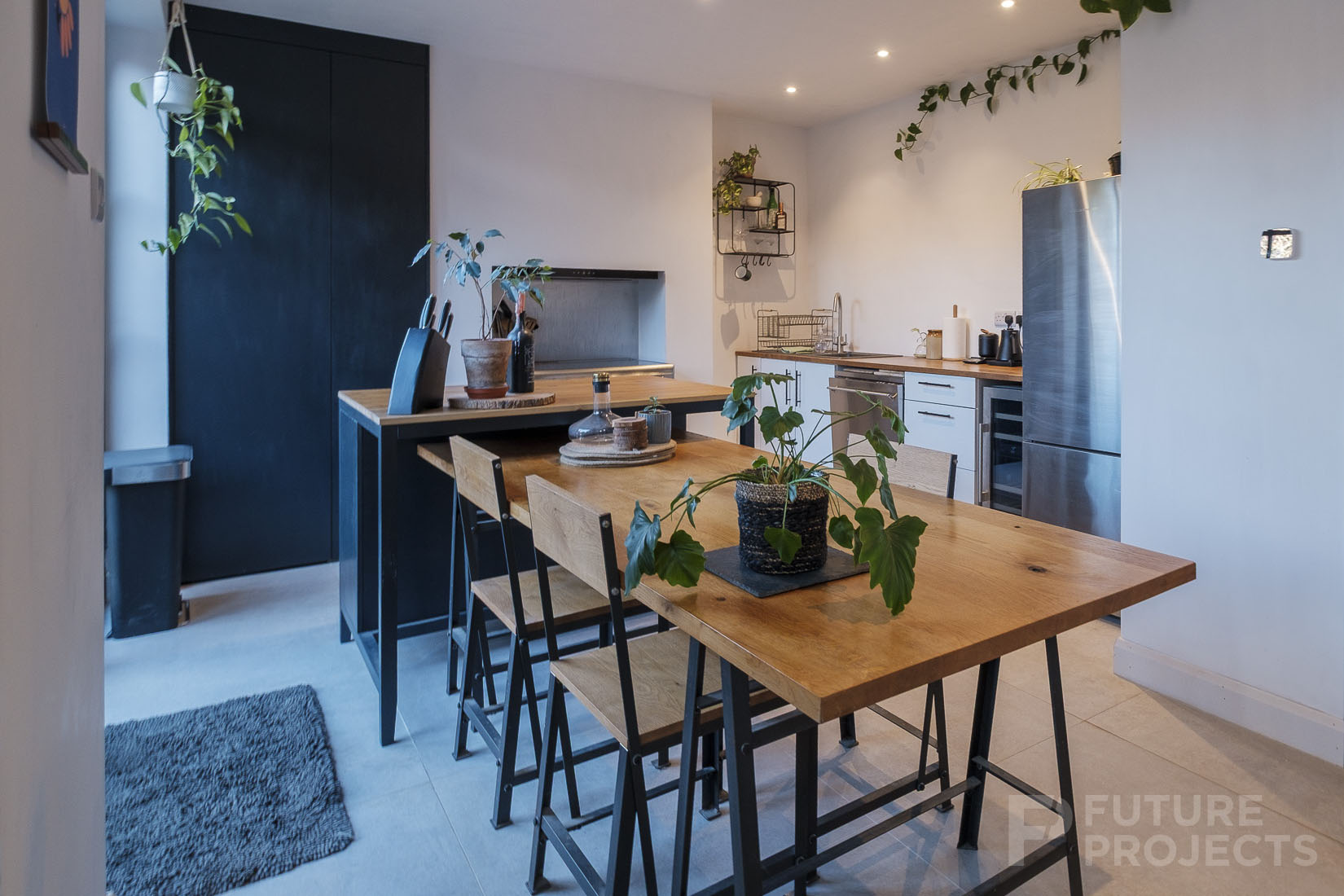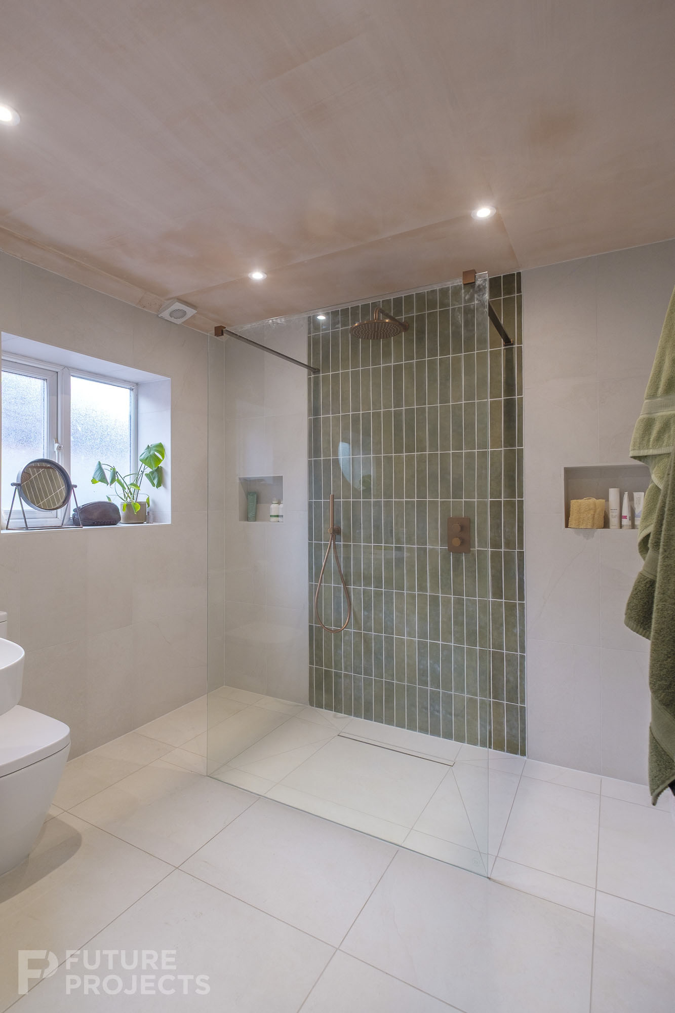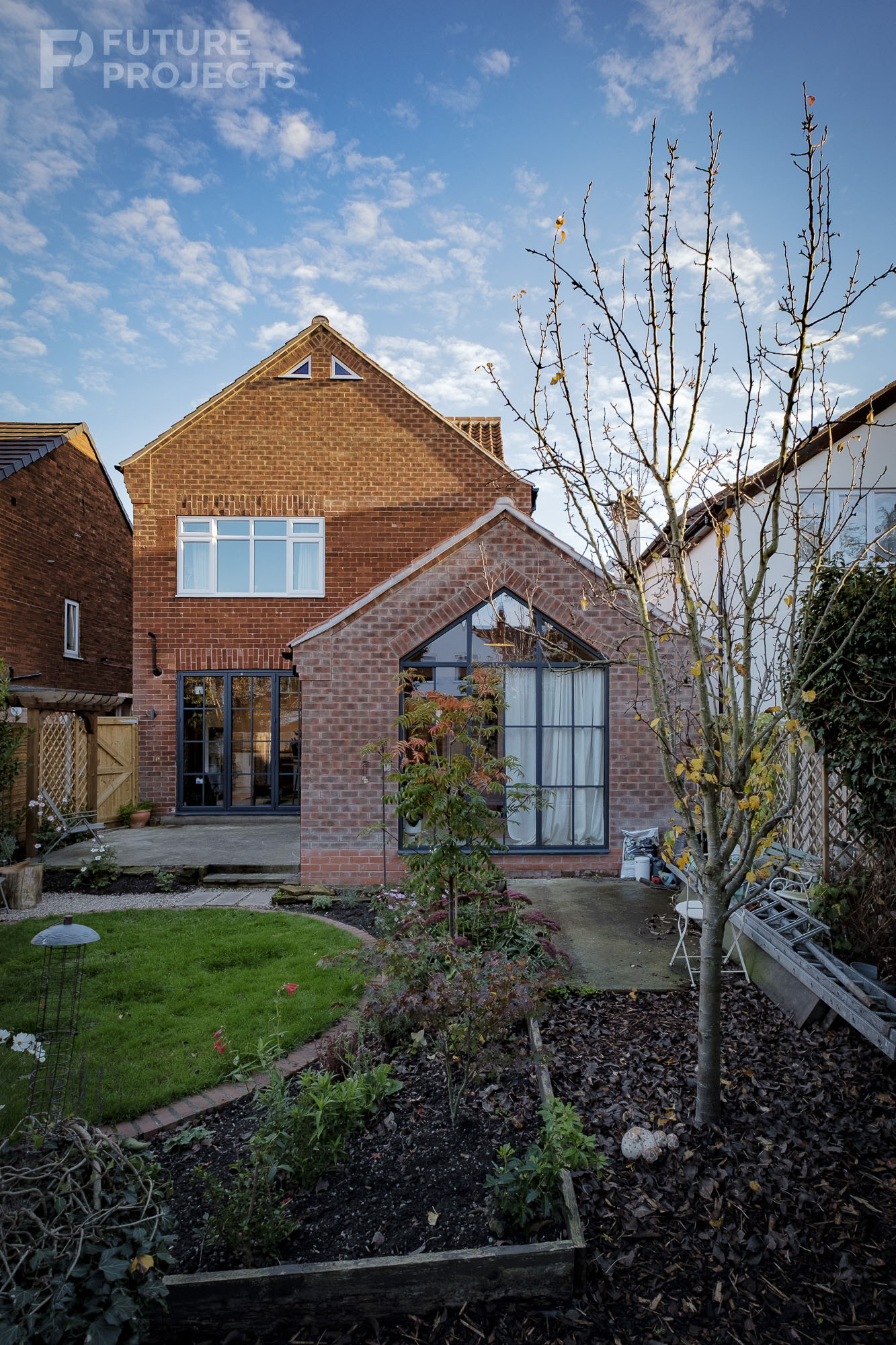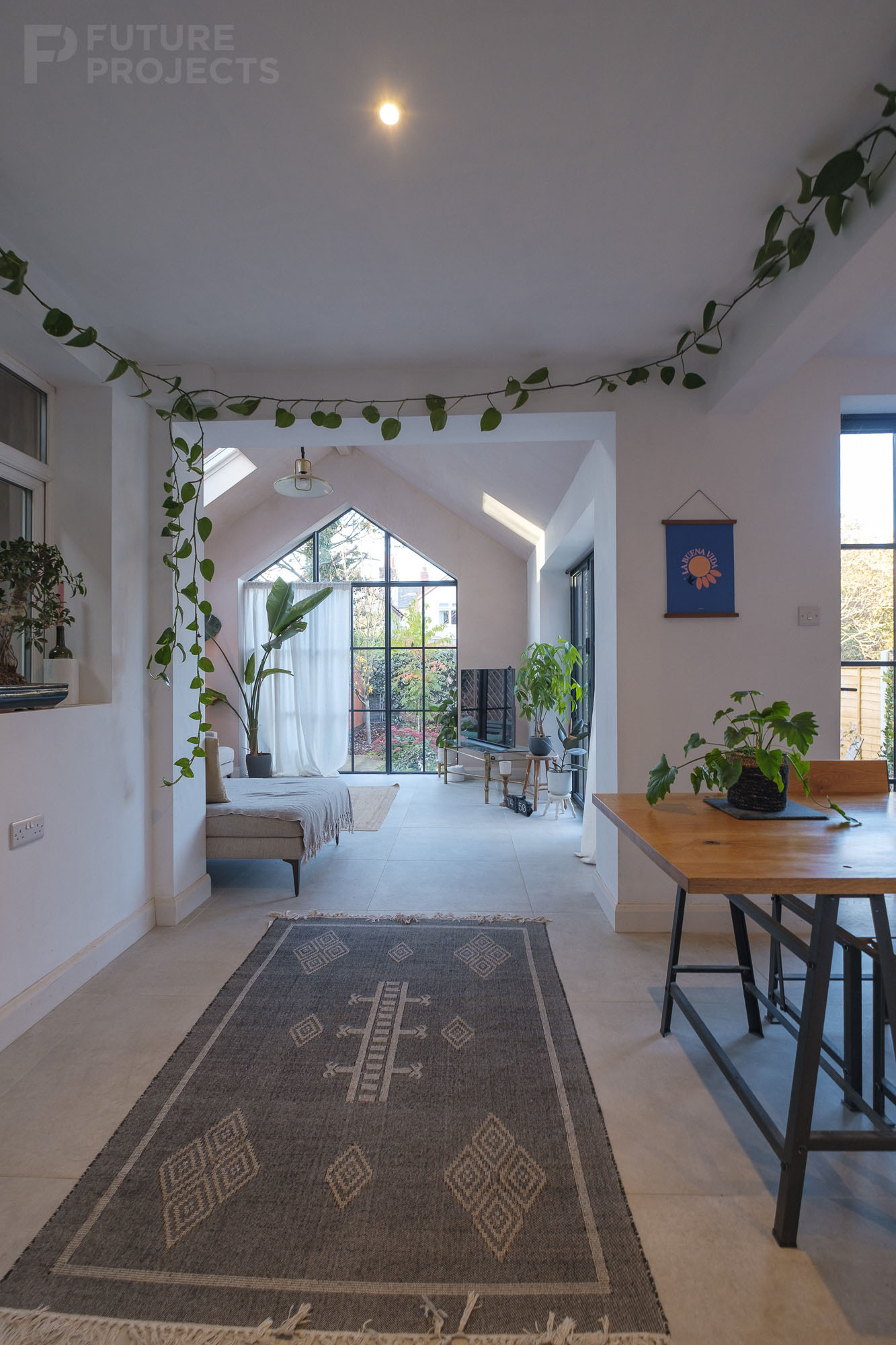 The ground floor extension features elegant crittall-style doors by Lowther Aluminium, and the new roofs were expertly installed by our sister company, Future Roof. Upstairs, we re-planned the layout to introduce a stylish new house bathroom, supplied and fitted by York Bathrooms.All building works were carried out by our talented in-house team at Future Projects.